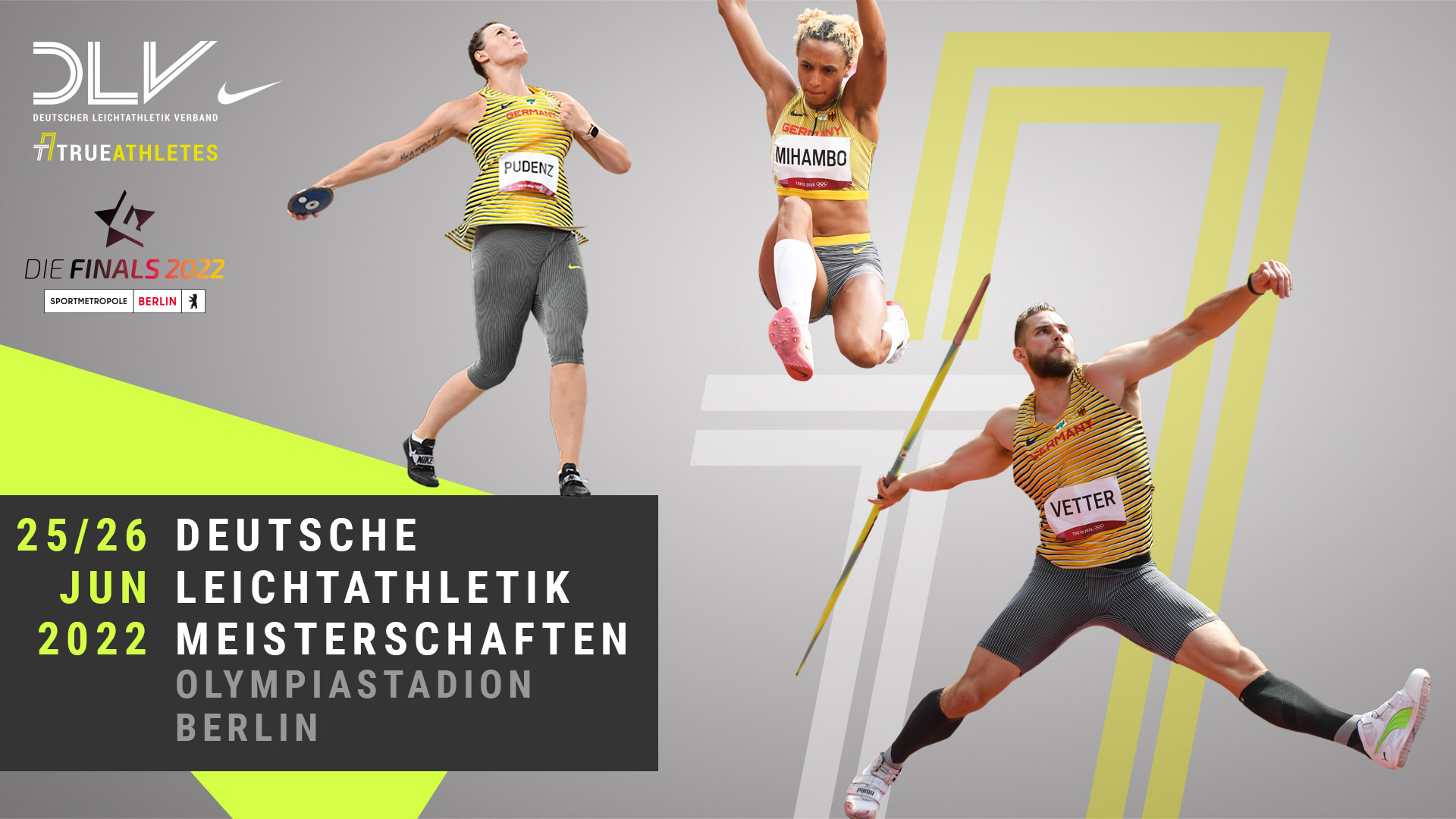 Wer holt sich auf der schnellen Bahn die Titel im Sprint und die heiß umkämpften Startplätze in den National-Staffeln? Kann die Olympia-Zweite im Diskuswurf Kristin Pudenz (SC Potsdam) ihren Titel gegen starke Konkurrenz verteidigen? Gibt es die nächste Gala-Vorstellung von Hindernis-Ass Gesa Felicitas Krause (Silvesterlauf Trier) und Ausnahme-Läuferin Konstanze Klosterhalfen (TSV Bayer 04 Leverkusen)? Wie weit fliegt Weitsprung-Olympiasiegerin Malaika Mihambo (LG Kurpfalz)? Und wie weit der Speer von Dominator Johannes Vetter (LG Offenburg)? Diese und mehr Fragen werden am 25./26. Juni im Berliner Olympiastadion beantwortet!