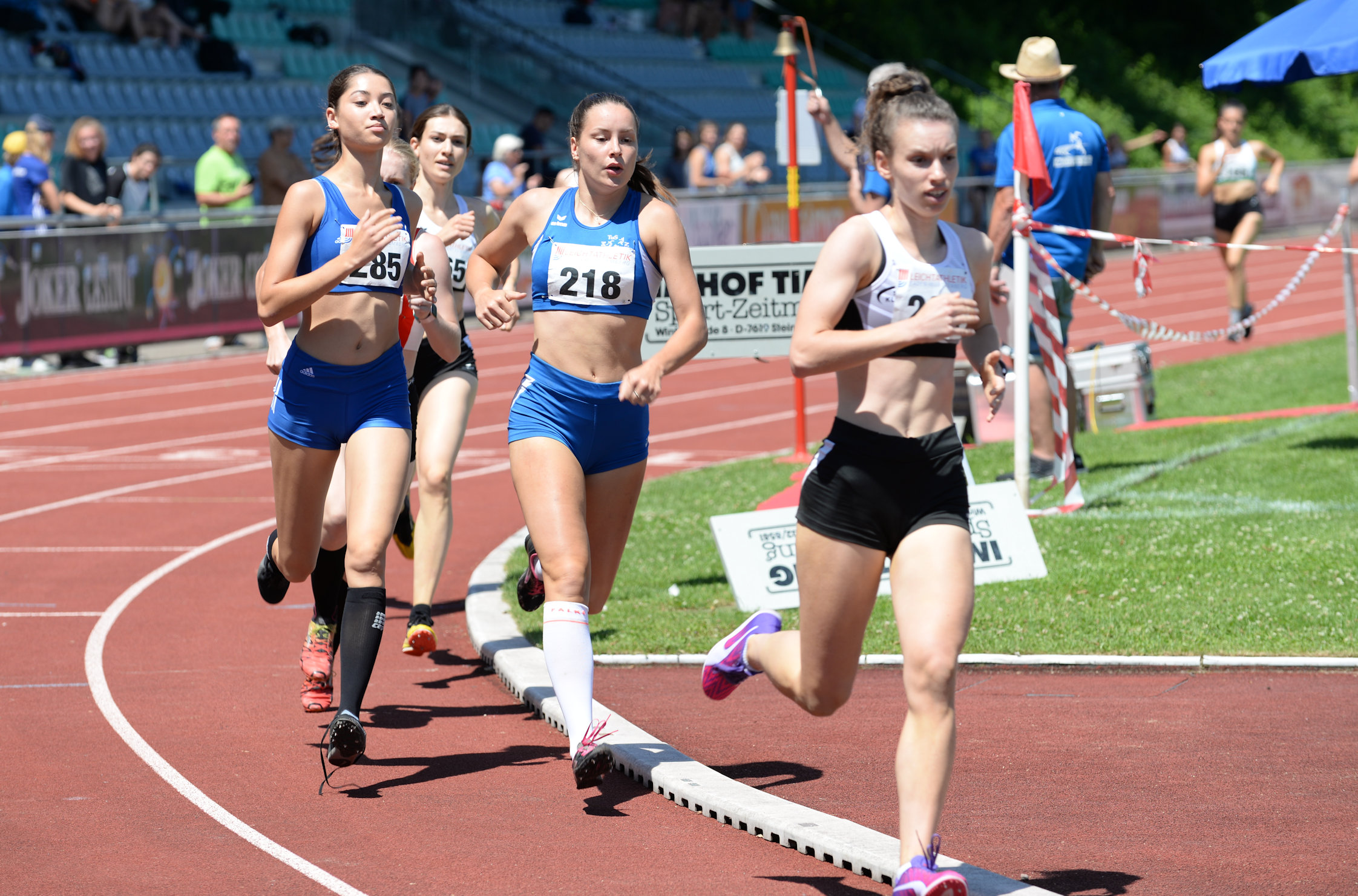 Die ersten Landesmeistertitel wurden bereits am Samstag im eintägigen Mehrkampf der Altersklassen U18 vergeben. Im Vierkampf der weiblichen Jugend konnte sich mit starken 3.157 Punkten die Wasseralfinger Leonie Groter durchsetzen. Türoffner zum Titel war bereits ihr guter Einstieg in den Wettkampf über die 100m Hürden mit einer Zeit von 14,57 Sekunden. Ihr folgten auf dem Silberrang Pia Schmidt-Rüdt (LG Welfen), die bei ihrem Heimspiel mit 3.041 Punkten einen knappen Vorsprung gegenüber der Drittplatzierten Tara Aykit (Sport-Union Neckarsulm; 3.030 Punkte) behaupten konnte. Noch größer aber war der Jubel der heimischen LG Welfen bei der Siegerehrung der Mannschaften Vierkampf. Hier konnte Schmidt-Rüdt gemeinsam mit Clara Theresa Wichmann und Miadel Pooß 8.055 Punkte sammeln und sich damit deutlich gegen die Konkurrenz durchsetzen. Es folgten die Unterländer LG (Pia Wendel, Amelie Wendel, Alicia Hurtado-Garcia; 7.234 Punkte) und der SSV Ulm 1846 (Lea Ludwig, Franziska Wloka, Jule Hauser; 7.205 Punkte) auf den Medaillenrängen.