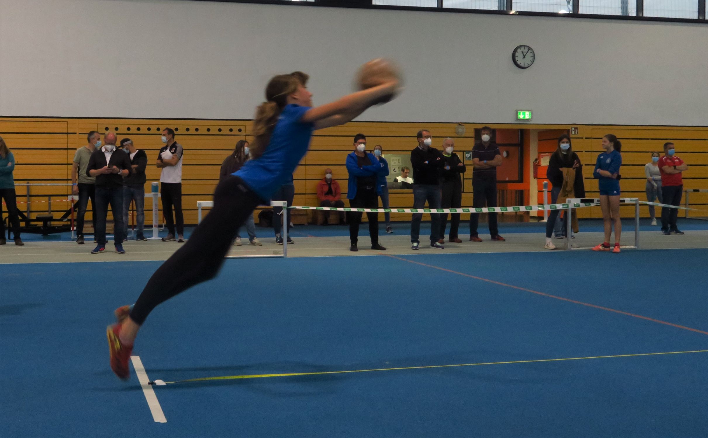 Musikalische Begleitung, andere Verpflegung und Preise sowie neue Stationen für das abschließende Demo-Training hatte sich das Organisationsteam um Landestrainerin Jennifer Hartmann ausgedacht. Insbesondere die elektronischen Reaktionsspiele an den Blazepods faszinierten die knapp 70 Talente des Jahrgangs 2008, die sich für das diesjährige Talentsportfest qualifiziert hatten. Aber im Hürdenwald, beim Turnen, den allgemeinen Würfen, den kleinen Sprüngen und an der Kräftigungsstation zeigten die Talente den anwesenden Stützpunktleitern und Landestrainerinnen, was sie drauf haben.