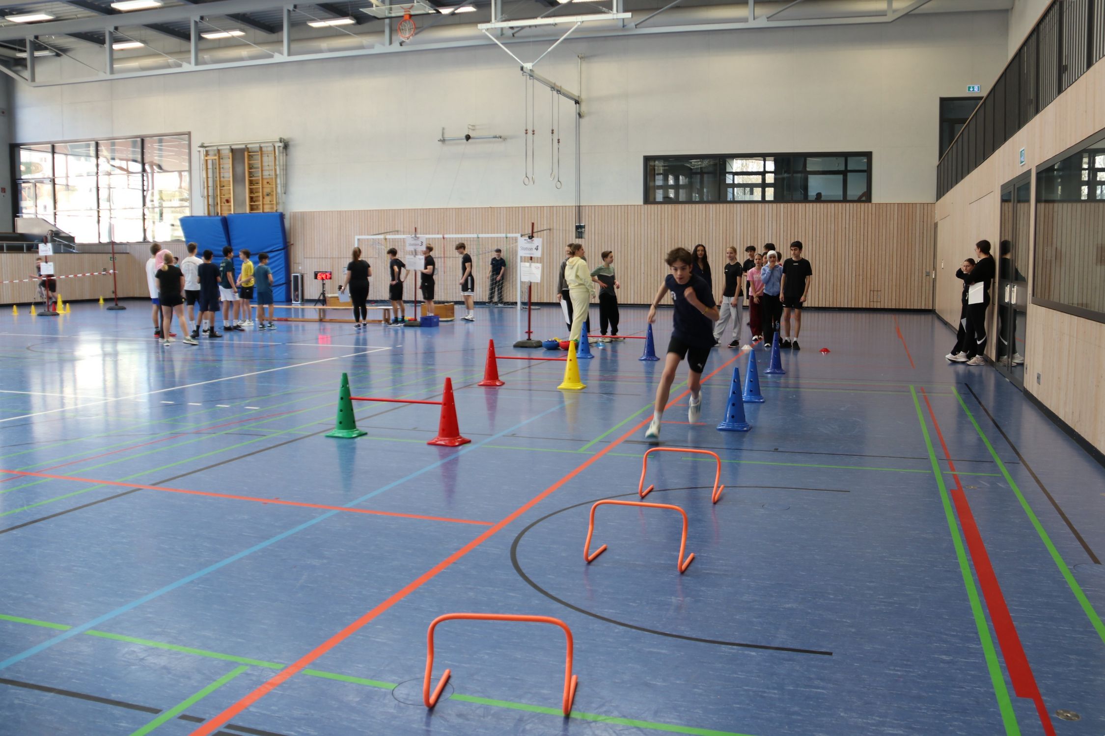 Insgesamt durchliefen in zwei Durchgängen 131 Schüler:innen die sechs Stationen, wobei sie von den Stations-Helfenden lautstark angefeuert wurden. Besonders beliebt war die Station „Speed-Toss“, bei der es ausnahmsweise einmal nicht um die größte Weite der Würfe geht, sondern um die höchste Wurfgeschwindigkeit.
